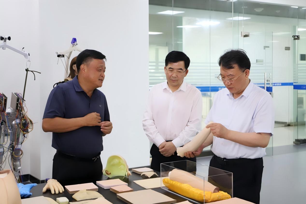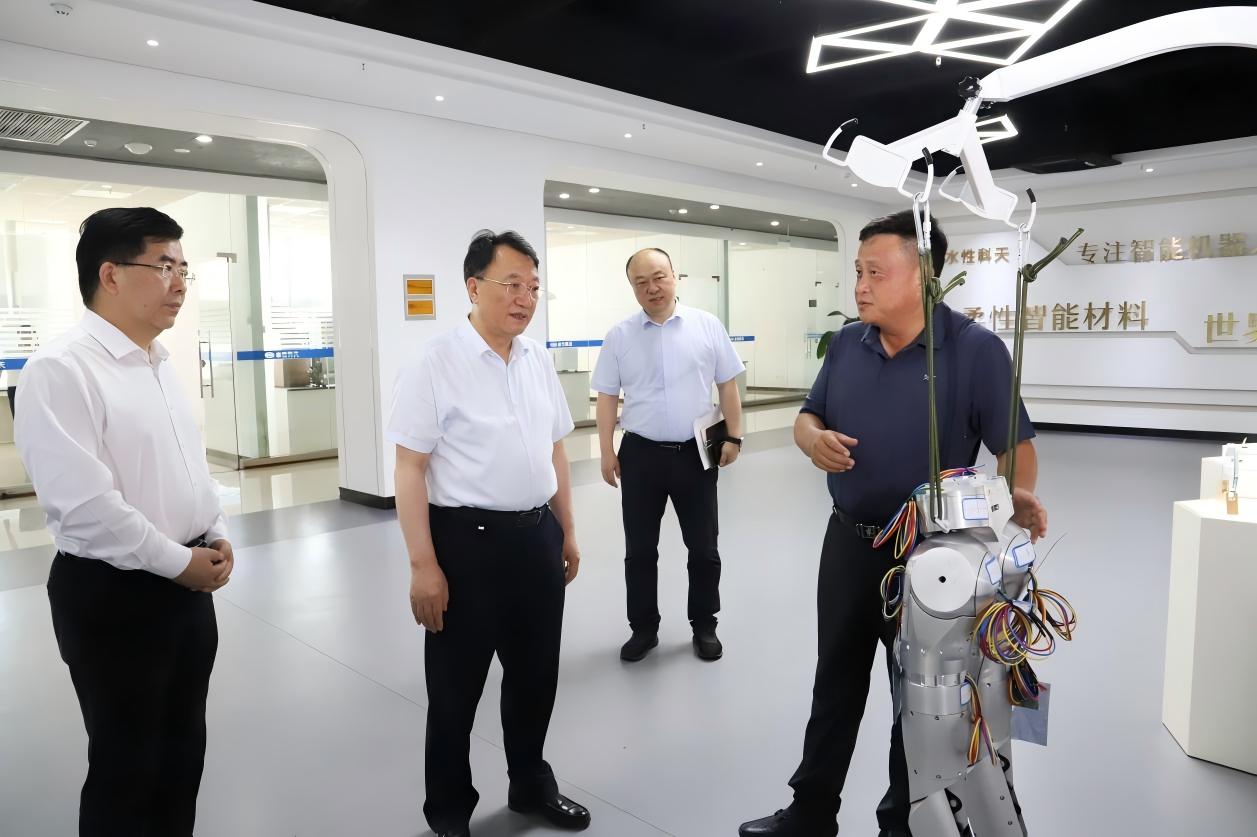 7月1日下午,合肥市委副書記、市長羅云峰走訪合肥柔性科天機器人材料有限公司(以下簡稱“柔性科天”),調研公司在人形機器人——柔性皮膚領域的研發與產業化進展。市政協副主席、市政府秘書長羅平及相關部門領導參加??铺旒瘓F董事長戴家兵博士、柔性科天負責人李維虎博士陪同匯報。