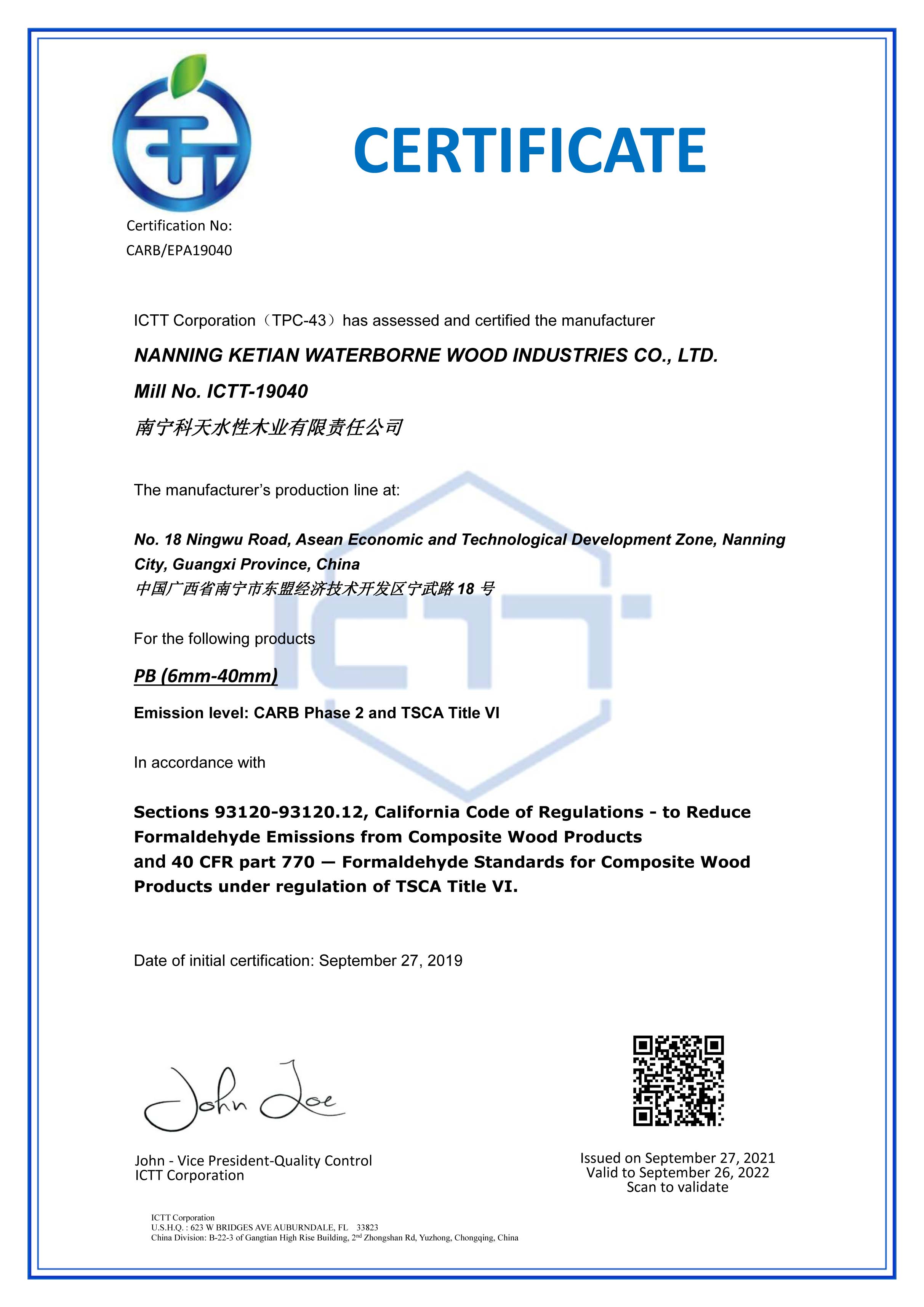CARB&EPA無醛豁免認證